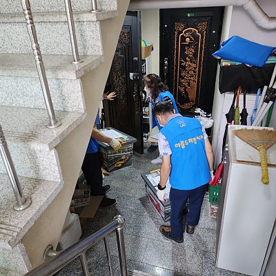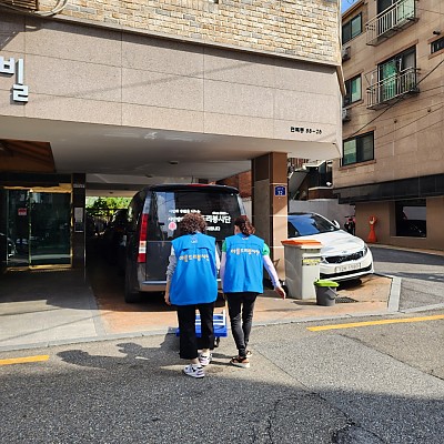 2023년7월22일 (토) 아름드리봉사단 홀몸 독거어르신댁 생필품전달 봉사오늘 다행히 비는 오지 않았고서북방향으로 태풍이 예보되어 있네요.오늘은 후원인 분들 덕분에 16차 아름드리찾아가는봉사에자원봉사인 7명이 안전하고 겸손하게 실천하고 돌아왔습니다.무연고 네 홀몸어르신 모두 지하단칸방에서 힘겹게 살고 계셨습니다.찾아 뵌…