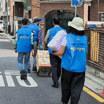 안녕하세요?오늘 다소 더운가운데 어려우신 홀몸어르신네가구에 안전하게 참봉사 실천하고 돌아왔습니다.우리 아름드리봉사단 처음으로 오신 김광희원장님열정적으로 봉사에 임해주셨습니다.또한 …